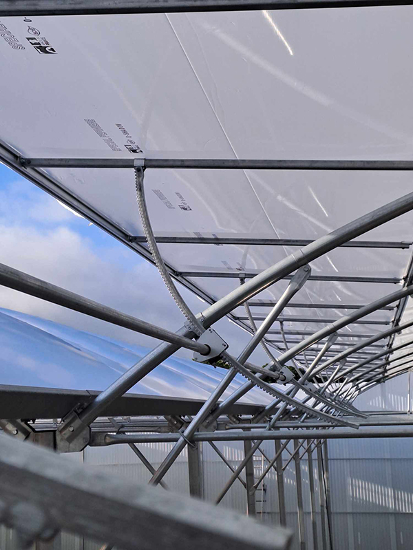 Pour renouveler l’air et ventiler vos multi-tunnels ou multi-chapelles, nos systèmes d’aération latérale continue sont disponibles par enroulement à commande manuelle ou motorisée. L’aération latérale est constituée d’une bavette de partie fixe en extrémité et d’un filet de protection.